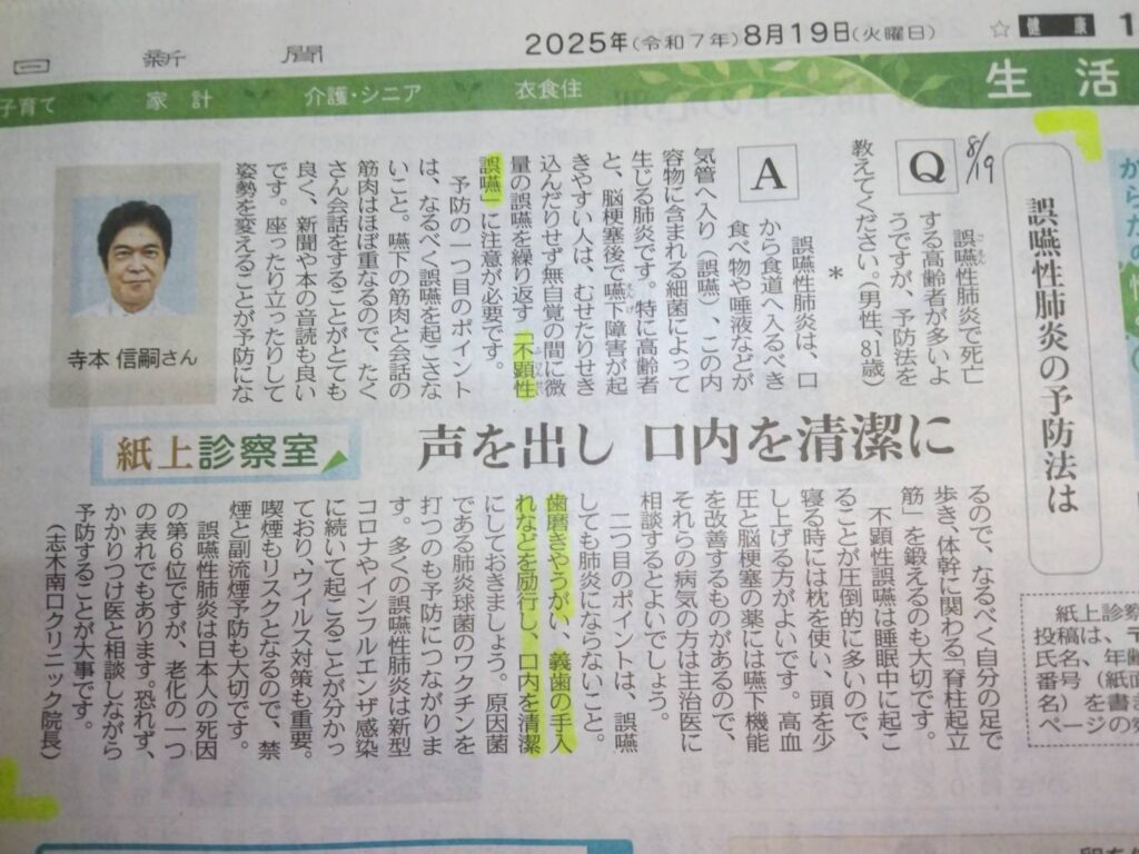 また、会話時に使う筋肉と嚥下時に使う筋肉は同じなので新聞を声に出して読む、人と話す、パタカラ体操で発音トレーニングをするなどもとても有効です!