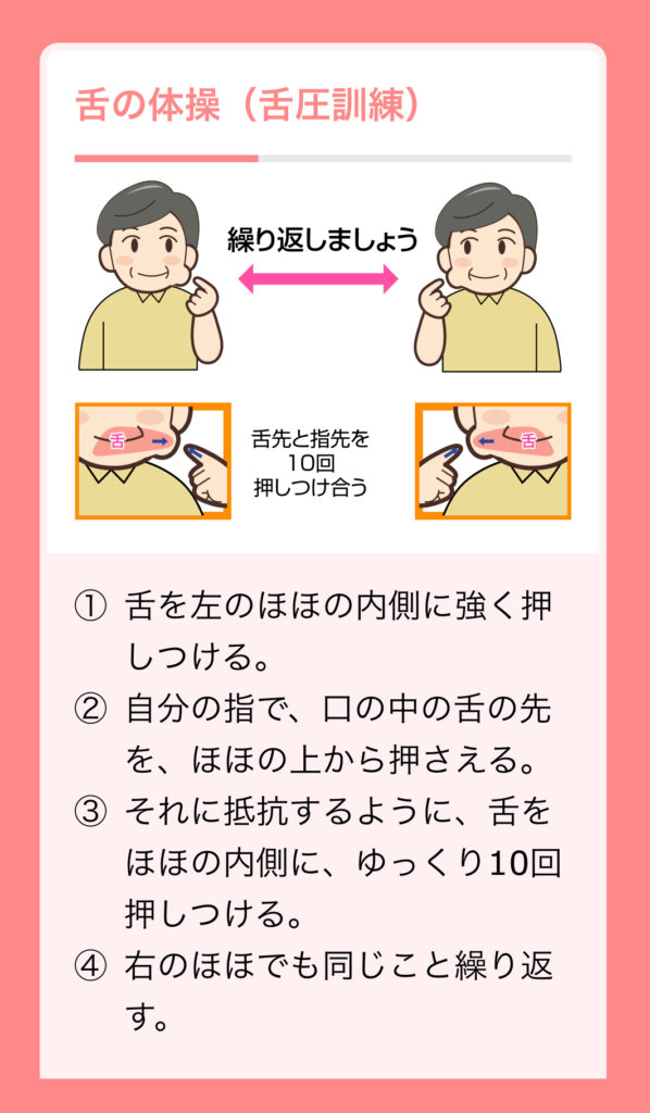 舌や口の周りの筋肉を鍛える体操をしましょう。