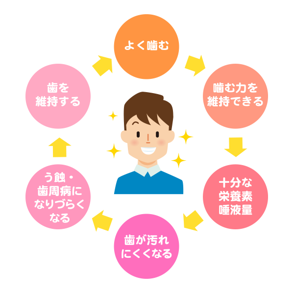 前回までに歯と食習慣の関係についてお話ししました。今日は歯で咀嚼(そしゃく:食べ物を噛み砕いて、やわらかく飲み込みやすくすること)をして食事を摂ることの大切さについてお話しします。