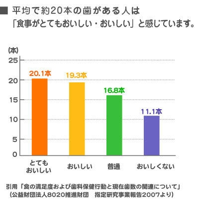 食べたい物を美味しく食べるにも歯は大切です。歯の本数は食の選択肢を変えます。