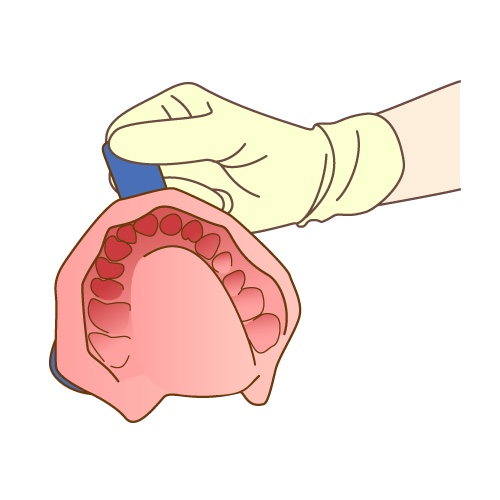 歯列や歯、歯茎の型を取るには、従来の手法だと粘度のような印象材をお口の中に入れ、固まるまで待つ必要がありました。印象材が固まるまでおよそ3分程度かかるため、上下の型取りをした場合、合計で6分程度かかる計算になります。