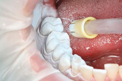 (金属の被せ物や詰め物などは、反射してしまうのでスキャンするのが難しいです。その場合、専用のスプレーを振りかけて対処することもあります。)